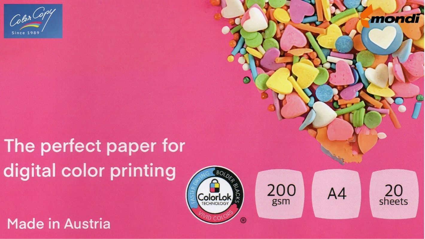 Khi ấn phẩm văn phòng thông thường không còn đủ để thể hiện tầm vóc của thương hiệu, đó là lúc bạn cần đến Giấy in màu Mondi 200gsm. Với bao bì màu hồng rực rỡ và biểu tượng trái tim đầy tính nghệ thuật, dòng giấy định lượng cao này là tuyên ngôn về chất lượng và sự tinh tế trong từng bản in.